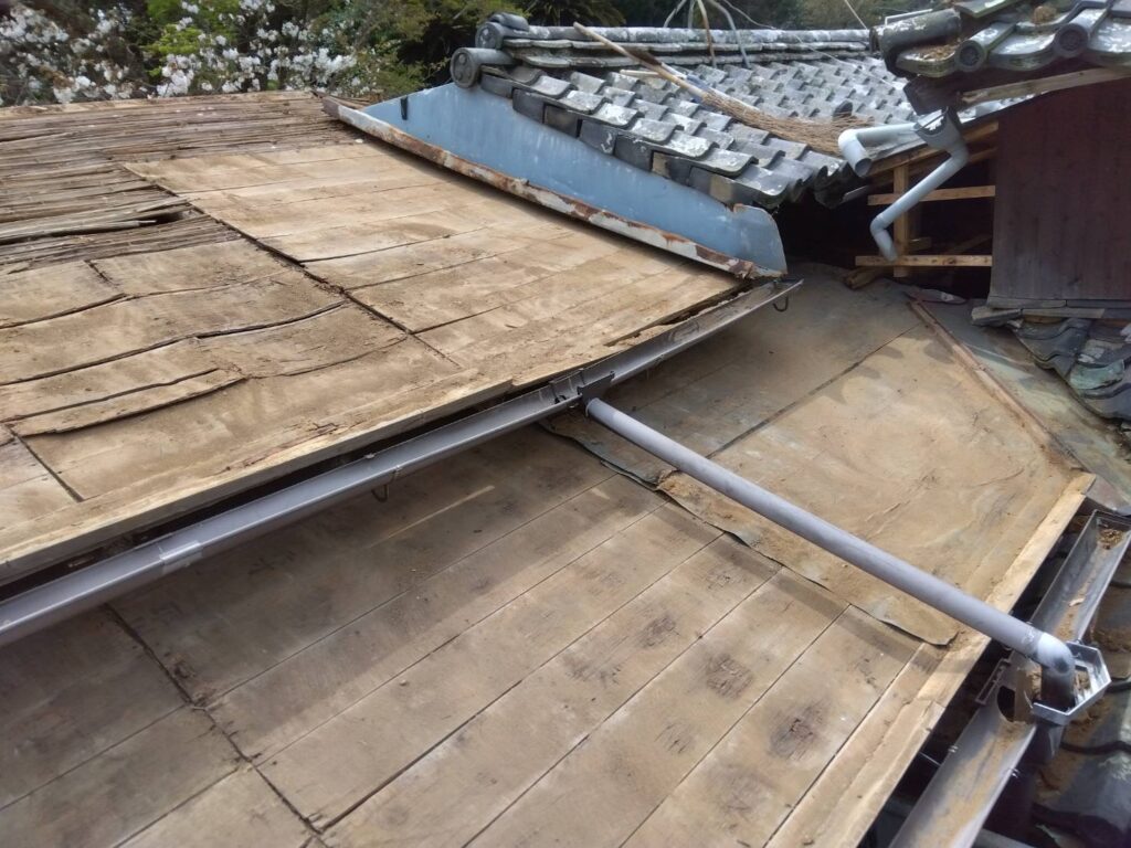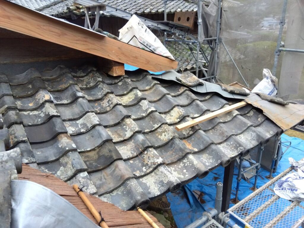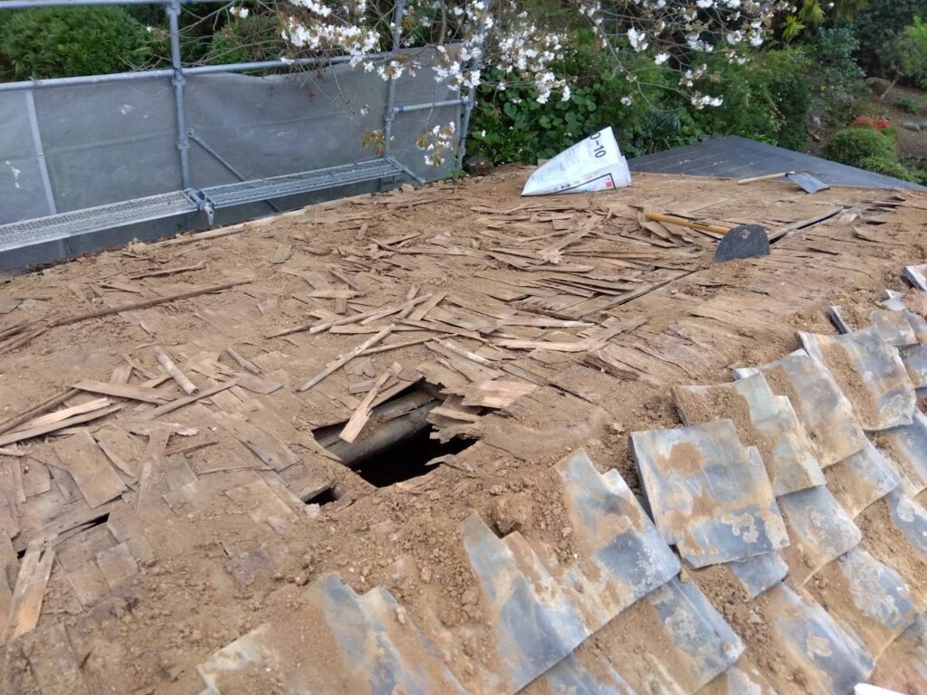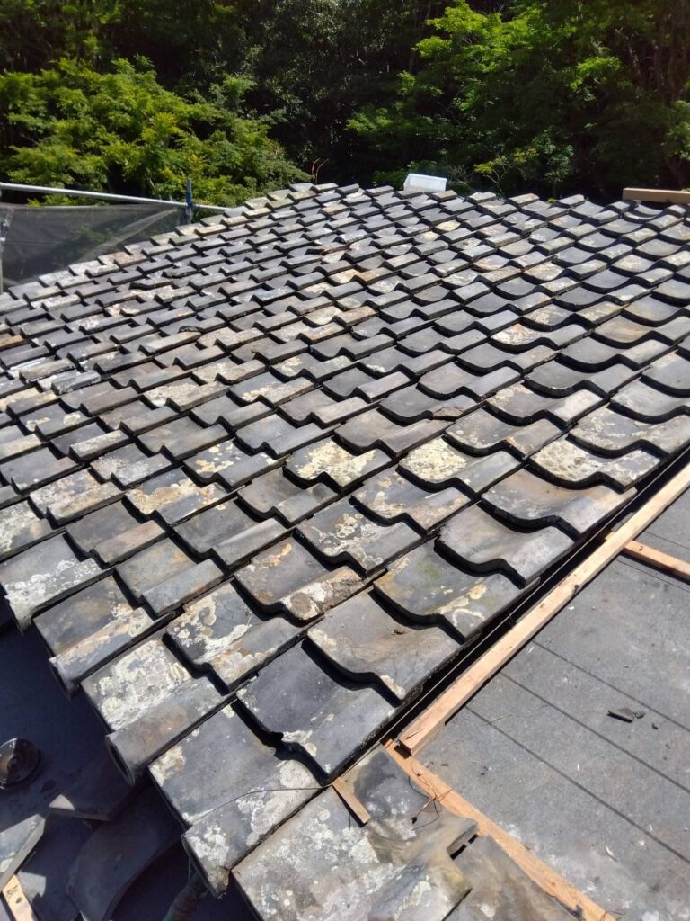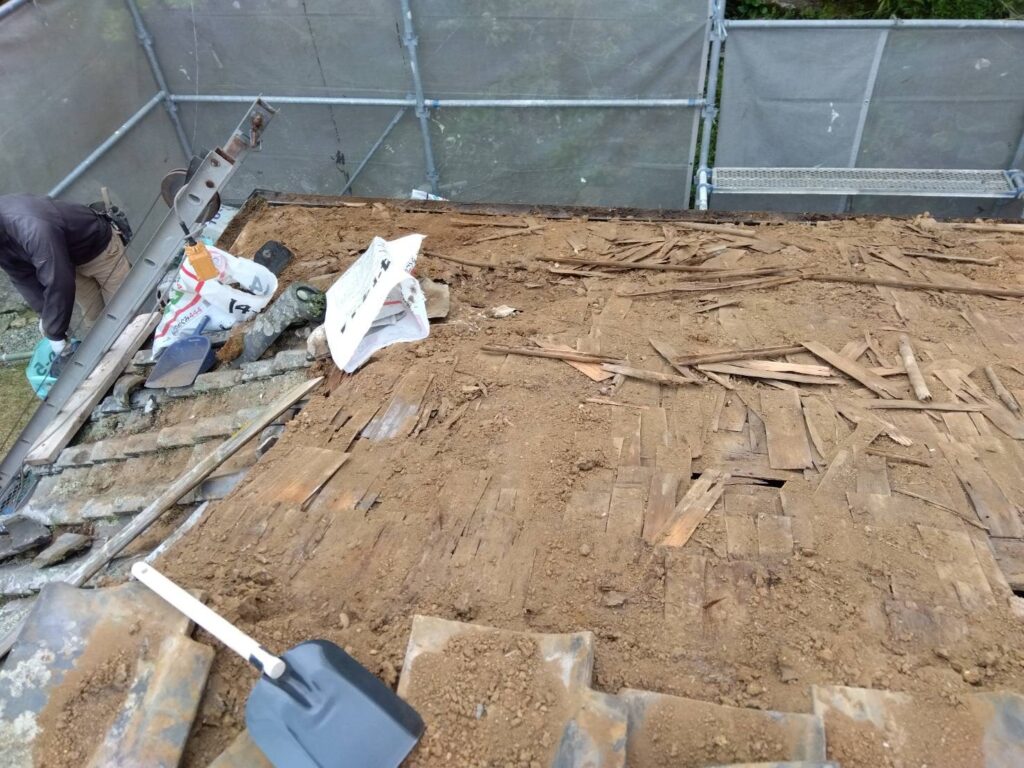 施工前の屋根は、土葺き(つちぶき)という昔ながらの工法で施工されていました。