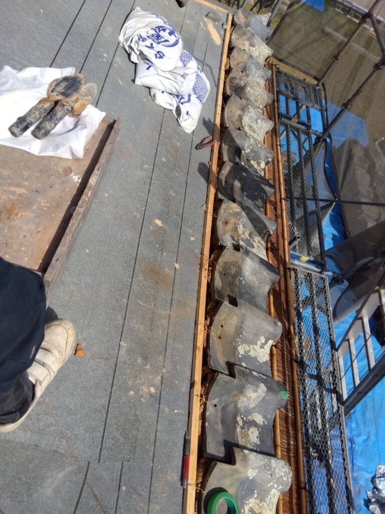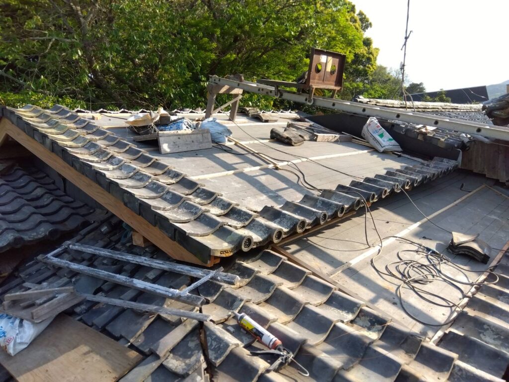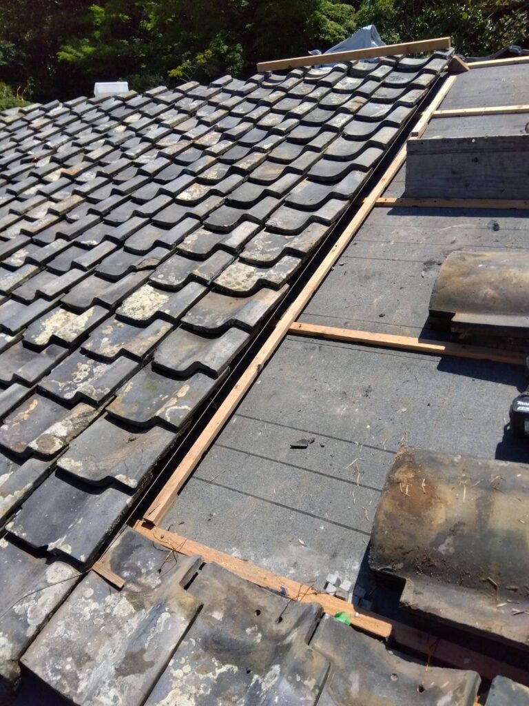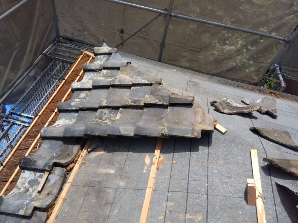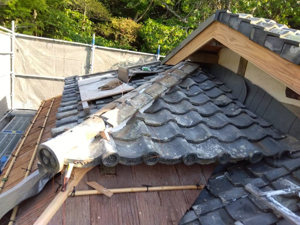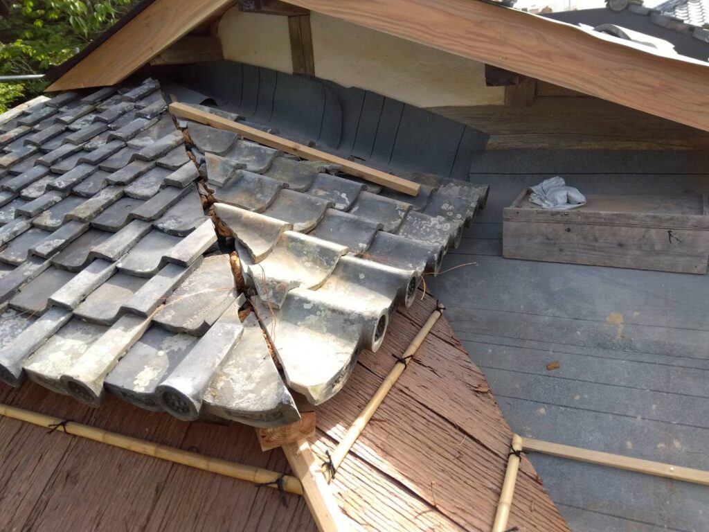 施工前の屋根は、土葺き(つちぶき)という昔ながらの工法で施工されていました。